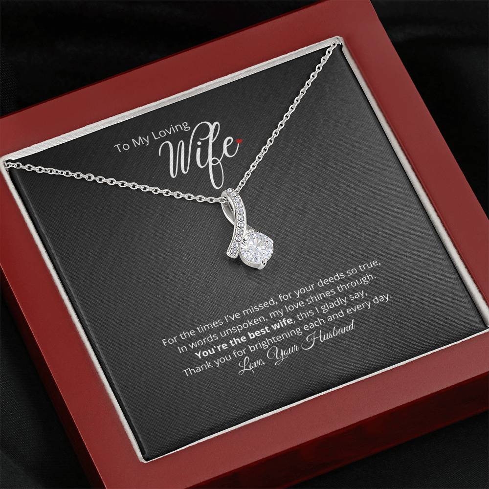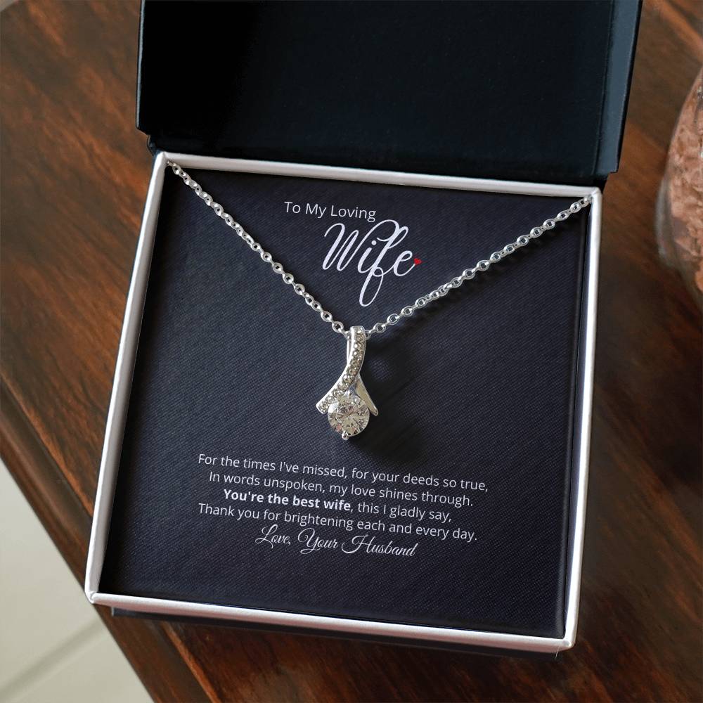 Imagine her reaction when she opens this stunning gift! The Alluring Beauty necklace features a petite ribbon shaped pendant that is sure to dazzle your special someone. Whether it's a birthday or anniversary, make sure to get her a gift she will love for years to come.